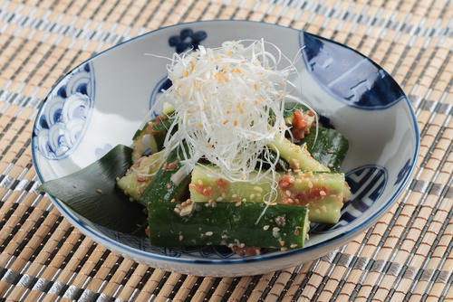そのまま食べても美味しい、おつまみのさきいかをひと工夫したおつまみだ。きゅうりと生姜をスライスして千切りにし、さきいかを食べやすい長さにしてすし酢と七味で和えるだけだ。このおつまみは時間がたつほど、さきいかがしんなりとふくらみ、味わいに変化が出てくる。好みでマヨネーズをかけるのもおすすめだ。