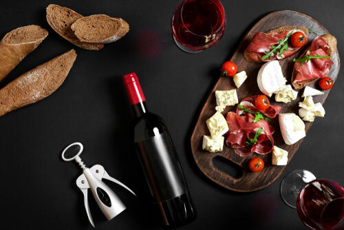 深い味わいの赤ワインには、サラミや生ハムなどの加工肉はバツグンに合う。サラミや生ハムも、熟成して少しドライ感があるタイプであれば味わいの深さという点でもマッチする。また、レバーのパテなど癖がある料理も、つまみとしてぜひ試してみたい一品である。