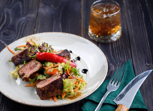 意外かもしれないが、ウイスキーと和食との相性も悪くない。とくに照り焼きの甘辛さは、ウイスキーと組み合わせると美味しい。ただ、一般的に味が濃いので、あまりたくさん食べるとウイスキーの味を隠してしまいやすい。小鉢程度に少し盛るくらいがちょうどよいだろう。
