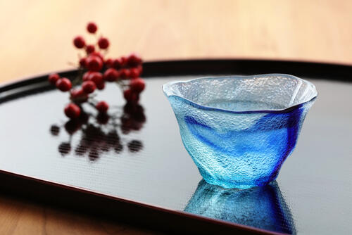 お湯割りにして梅干しを入れたり、柑橘類の果汁を加えたりするのもおすすめ。水草に見立てた大葉と、魚に見立てた唐辛子を入れた「金魚」という飲み方は、キンミヤ通には定番だ。風味が加わるだけでなく見ためも楽しい。