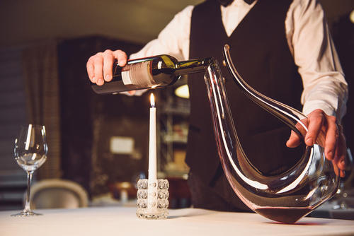 グラスに注がれたワインを飲む前に、グラスの中でワインをクルクルと回す「スワリング」によっても、ワインに酸素を溶けこませることができるのだが、グラスでは空気に触れる面積が小さく時間がかかるうえ、スワリングのやりすぎはマナーに反する。