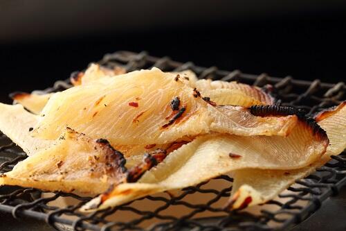エイヒレは日本酒のおつまみとして有名だ。もちろんひれ酒のおつまみとして食べても美味しい。ひれ酒の旨みとエイヒレの味わいがマリアージュされるためだ。ひれ酒の酒をお湯割焼酎に変えてもエイヒレとの相性はよいので、さまざまなお酒で楽しんでみてほしい。