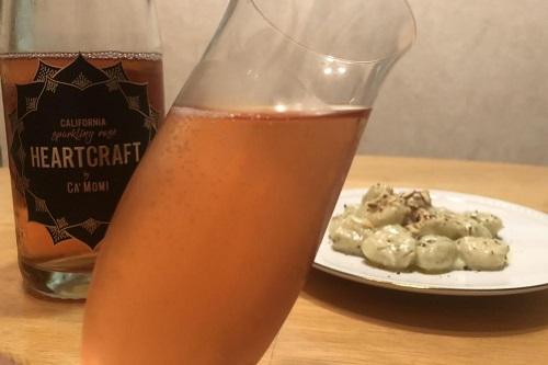 今回はハートクラフト バイ カモミ スパークリング ロゼのフルーティで辛口のニュアンスに合わせて、ブルーチーズのニョッキとペアリングした。