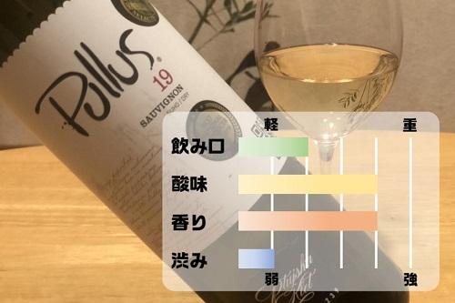 プルスのソーヴィニヨンは、さわやかな柑橘類のアロマで、フレッシュでいきいきとした酸がしっかりと主張している。色調は薄めで、さらりとした飲み心地、飲み口はドライでとても飲みやすい。シーフードを使った料理やハードチーズなど、様々な料理とペアリングできそうな飲み口だ。