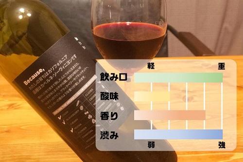 じつはこのBecauseワインシリーズは、他にもさまざまな国や地域ごとに白ワインやスパークリングワインなど数種類展開されていて、全ての種類が1,000円台とリーズナブルに購入できる。そのため日々の晩酌として、デイリーワインとしてカジュアルに活用できるのがうれしいポイント。そしてエチケットの裏にはアロマのチェックシートがあり、初心者でも理解しやすいような工夫が施されている。ワイン初心者の人にも是非オススメしたいシリーズだ。