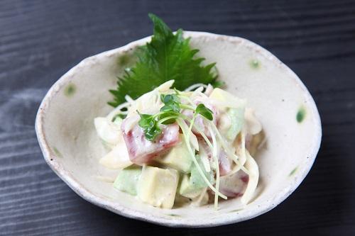 キャベツをさっと茹でて水気を絞る。アボカドは種を取り皮を剥いてひと口大に切る。シーズニングの材料をボウルに入れて合わせ、キャベツ、しらす、そしてアボカドを入れる。アボカドを潰しながらすべてを絡めれば完成。
